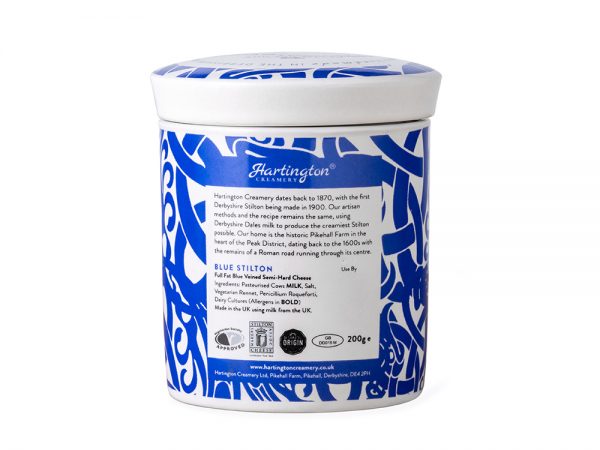 Hartington crumbed blue Stilton is potted into this beautiful ceramic pot and is ideal as a gift for any celebration. Our amazing Derbyshire Stilton is handmade and the only one allowed to be made outside of Nottinghamshire and Leicestershire. Hartington Stilton was a Bronze winner at the 2021 and Gold winner at the 2015 International Cheese Awards.